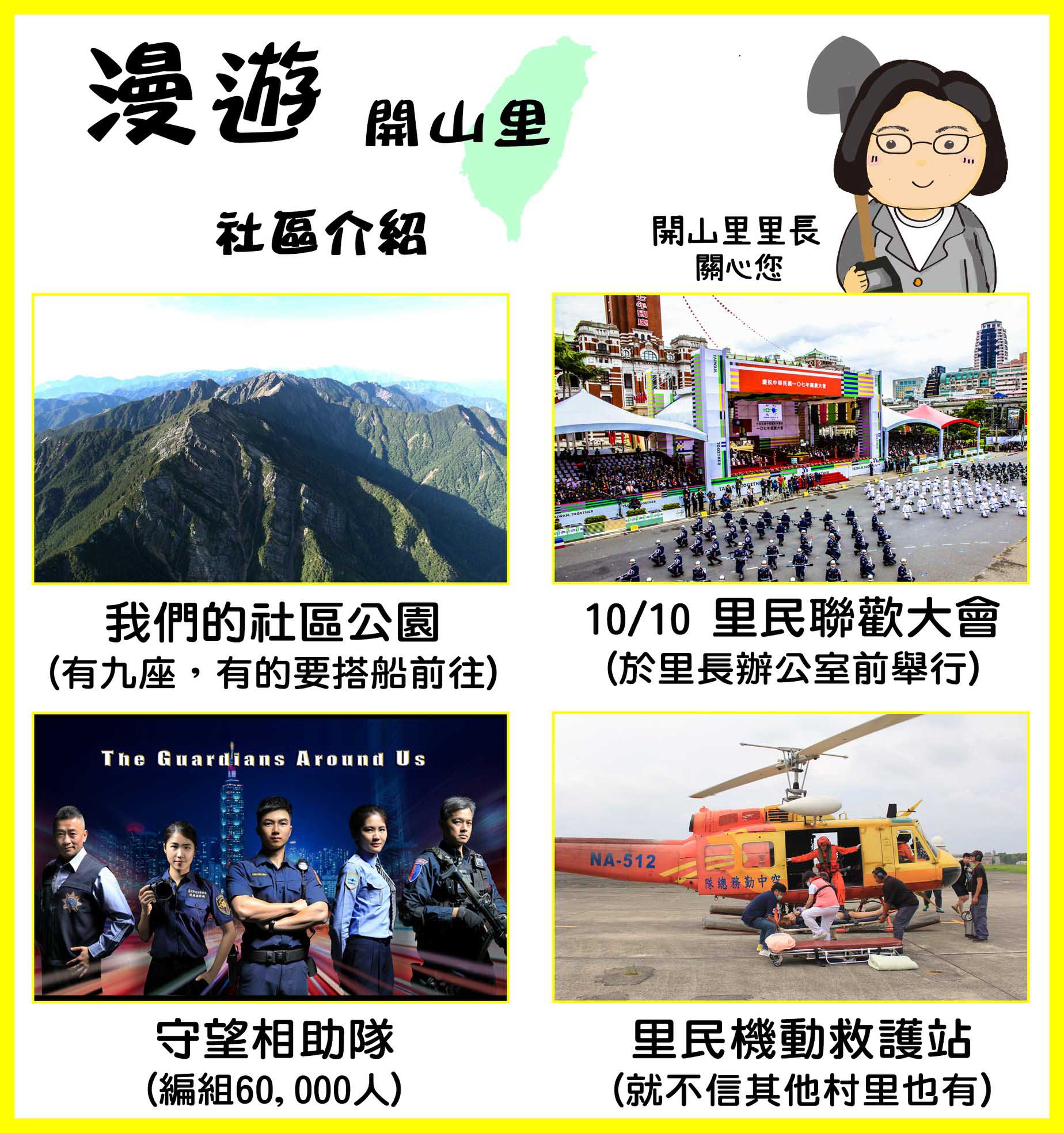 一個烏龍的登革熱疫情通知,讓全台灣的網友們都暴動了,笑稱「開山里」是全台最大里,內政部更是直接開自己玩笑,貼文發出國家公園就是我們的社區公園、警察就是我們的守望相助隊,藉此再度宣導希望「里民們」嚴加防範登革熱疫情。