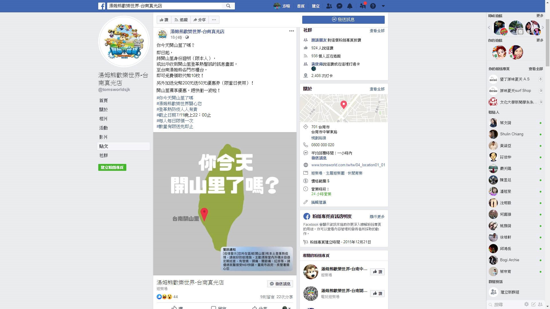 台南的湯姆熊更是沒放過在自家台南市發生的趣事,只要是開山里里民去到台南的湯姆熊,即可免費領取代幣10枚,另外加送兌幣200元送50元優惠券!業者搶搭開山里的商機真是創意滿滿。