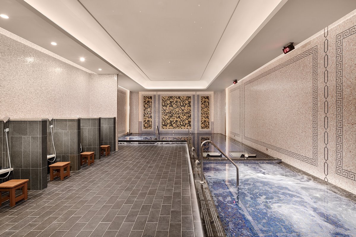 最受賓客喜愛的沐三溫暖,以傳統日式三溫暖流程為設計發想,打造寬敞冷熱水池、洗浴區、烤箱及蒸氣室,讓人輕鬆卸下一身疲憊,重拾能量。走出室內健身空間,露天的四季恆溫泳池長25公尺,池畔邊矗立雄偉的羅馬柱,不受氣溫影響可全年盡情暢游,專業泳訓課程亦可依會員需求提供。