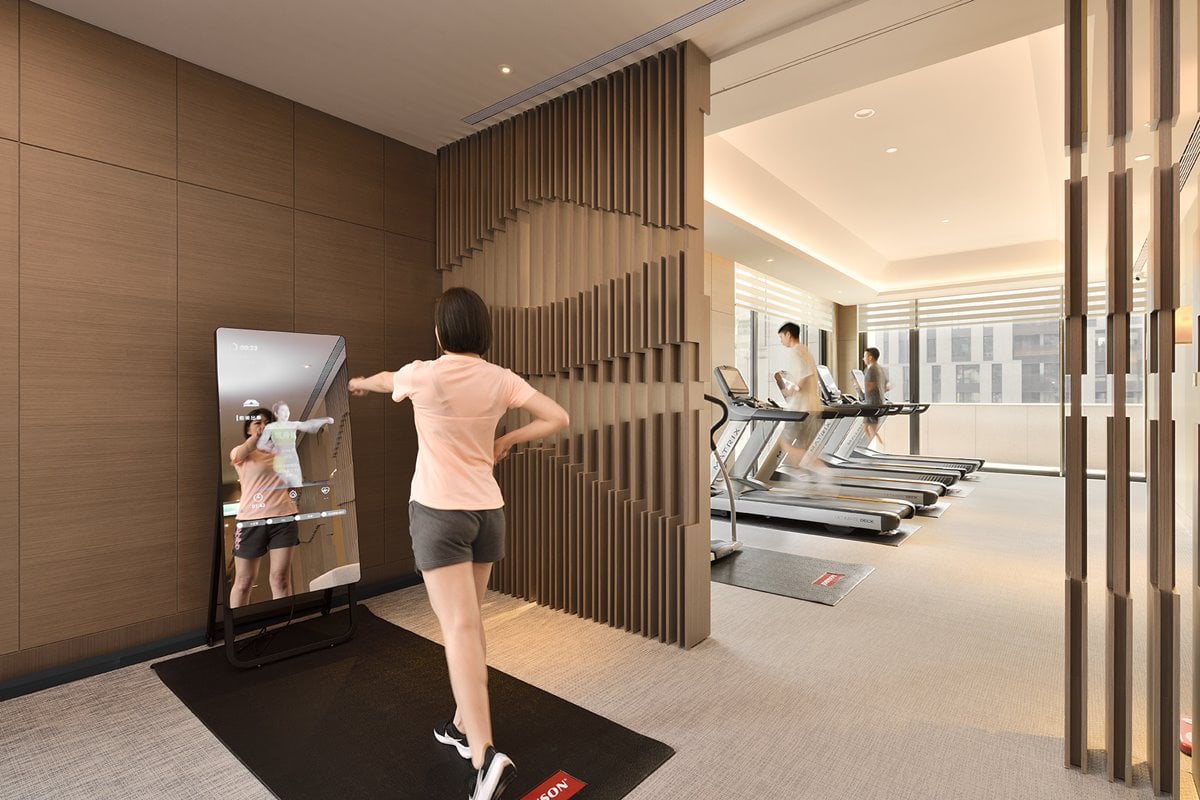位於飯店四樓的全新健身中心,邀請設計師重新規畫空間,大幅擴增健身空間,引進完善的健身設備,包括由多名體壇好手代言的Johnson健身AI魔鏡,專業師資隨時於線上提供多樣課程教學。另外還提供MATRIX飛輪機、跑步機、史密斯綜合訓練機等完整訓練器材,並提供能量飲品補充活力。