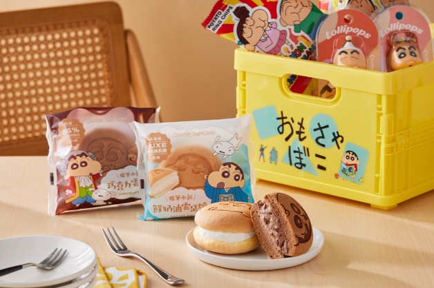 「蠟筆小新雲朵燒」內餡採用北海道LUXE乳酪,外層用新鮮雞蛋和牛奶製作如雲朵般輕盈的蛋糕,四月份推出「 鮮奶油及巧克力」兩款新口味 ,以環遊世界為概念,蠟筆小新鮮奶油雲朵燒以穿著日本傳統服飾的小新為造型;巧克力雲朵燒由歐風造型的小新代表,內餡加入64%比利時巧克力,味道更加香濃!