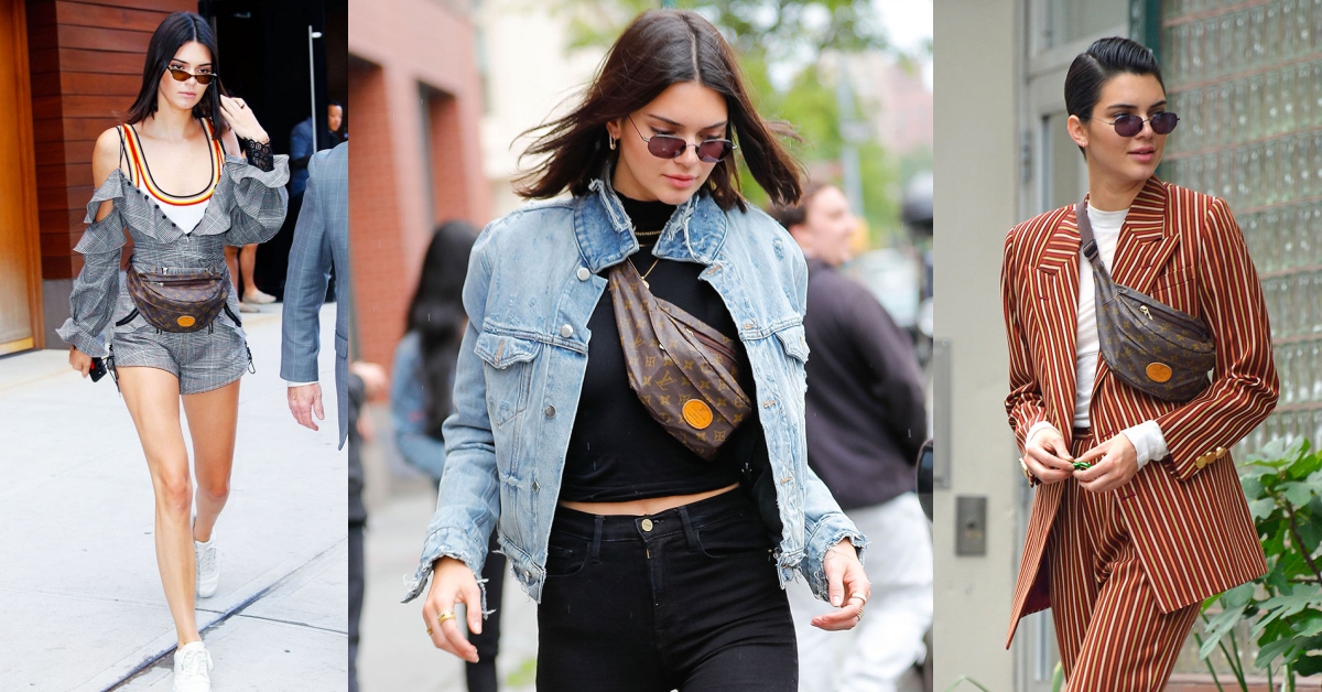 而西方腰包代表,絕對是「肯豆」坎達爾珍娜莫屬。她出街率超高的這款路易威登霹靂腰包,可側斜跨在肩上,也可以用於腰際。坎達爾穿荷葉袖連身褲、帥氣條紋褲裝搭配腰包都相當match。第一回合pk沒輸沒贏,平手!