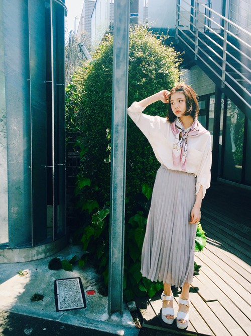 簡單的雪紡百褶裙給人清爽的感覺,搭上絲巾讓穿搭變得更加有層次、也多了些許惹人憐愛的印象~
