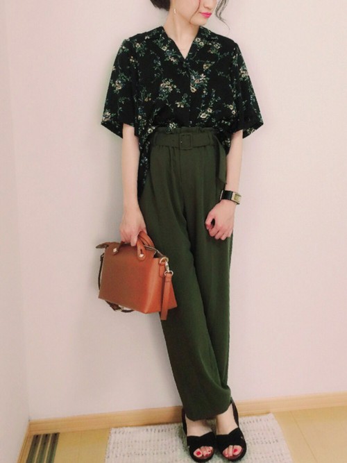 軍綠色+碎花襯衫的搭配悠閒卻非常有個人風格。而且軍綠色穿起來非常顯白,如果女孩們喜歡成熟且帶有休閒感的穿搭可以試看看。