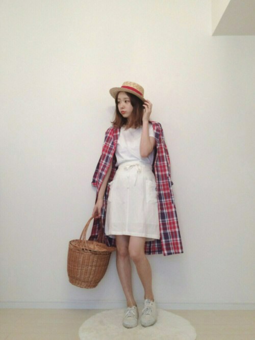 格紋襯衫長外套配上裙裝原來也可以這麼有型!尤其是搭上草編的單品,是不是更有夏天的味道了呢?因為紅色格紋非常搶眼,在搭配時其他部份的用色就盡量簡單化,才不會互相搶鋒頭喔!