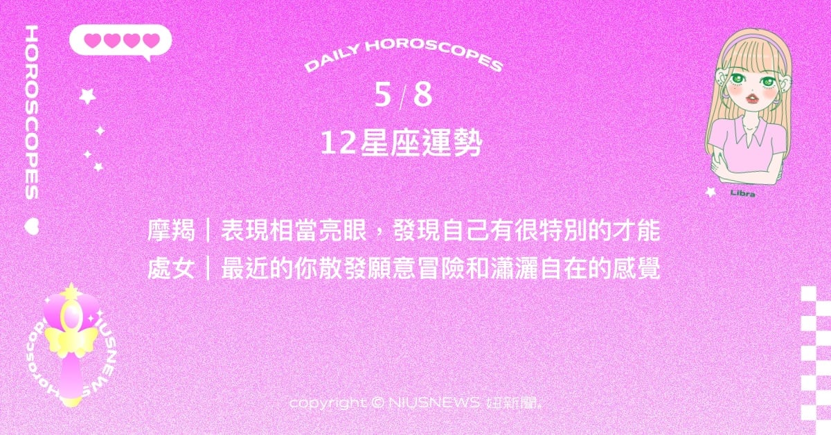 最近的妳充分感受到生活各方面的決定權,都回到了妳自己的手上。大家都很重視妳的感受與意見,妳也很努力去爭取自己應有的權益、試圖讓一切都在掌握和理解範圍之內。