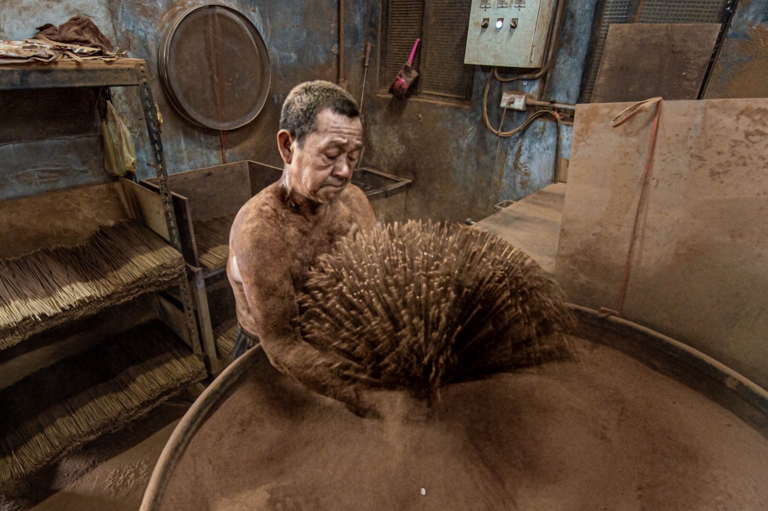 手工香的製作,需要經過多道精湛工序。製香師傅們經過長年的洗練,掌握著每個手勢、每一份粉量的拿捏,形成無可取代的深厚功力。宜蘭氣候的多變讓製香師傅們面臨不少挑戰,憑靠著製香師傅們的經驗和雙手,親自感受氣候與香材的交互作用,謹慎地調整每一步驟。