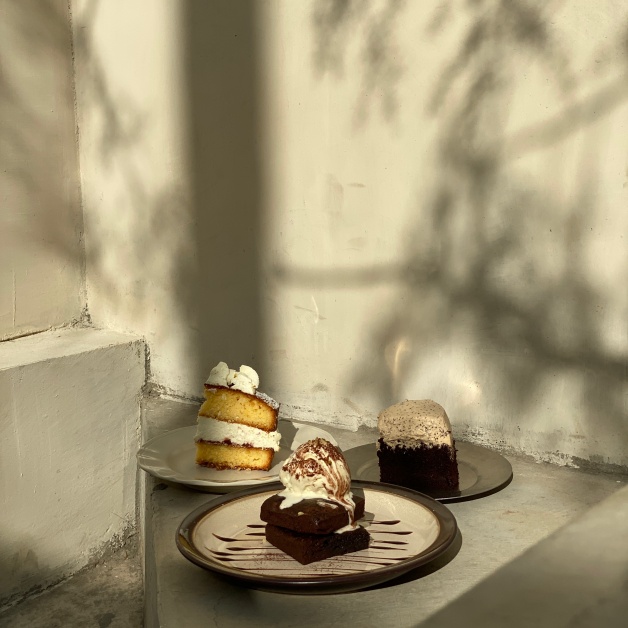 跑咖妞妞必備!去咖啡廳踩點拍甜點和咖啡是一定要的吧~找個簡單的背景,擺上有漸層感的拿鐵,旁邊放幾塊蛋糕,喀嚓拍完後,提高亮度,讓顏色更加顯白,減少對比,讓色彩的豐富度銳減,畫面就會比較乾淨又簡約!