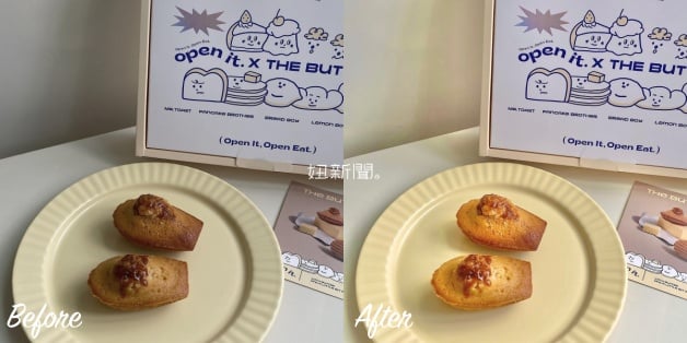 最基本款「奶油餐桌」,整體畫面偏「奶油黃色」,想要在畫面上顯得溫暖,但又不會過死橘,基本上「增豔」、「飽和」和「色溫」就很重要,但千萬不要調整過頭,不然會很不自然喔!