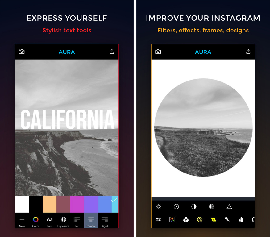 《AURA》有許多特別的「淡色色調」可以調整,還可裁切成IG尺寸的大小,非常適合喜歡文青色調的女孩兒。