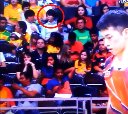 分かりにくいけど、バドミントンの試合で翔くんが着席したところ