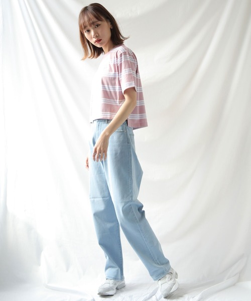 5月可說是春夏季的過渡期,面對不冷不熱的氣候,短版上衣絕對不能少!前短後長的小心機可隱約露出纖細的腰部,配上高腰長褲簡單又俐落!