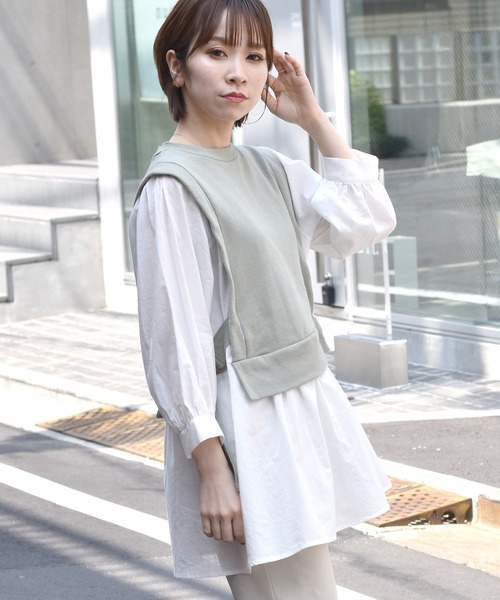 如果說韓妞喜歡將衣服紮進褲檔裡讓穿搭看起來更俐落的話,那麼日本女孩最常見的穿搭應該就是讓衣服長過臀部,再配上針織褲、長裙或寬褲了吧!雖然少了幹練的感覺,但穿搭上很有層次感。像是圖中的短版背心、透膚白衣配上顏色相近的杏色褲,整體看去也有和諧、拉長身形的效果,而背心兩側的蝴蝶結綁帶造型也很加分。