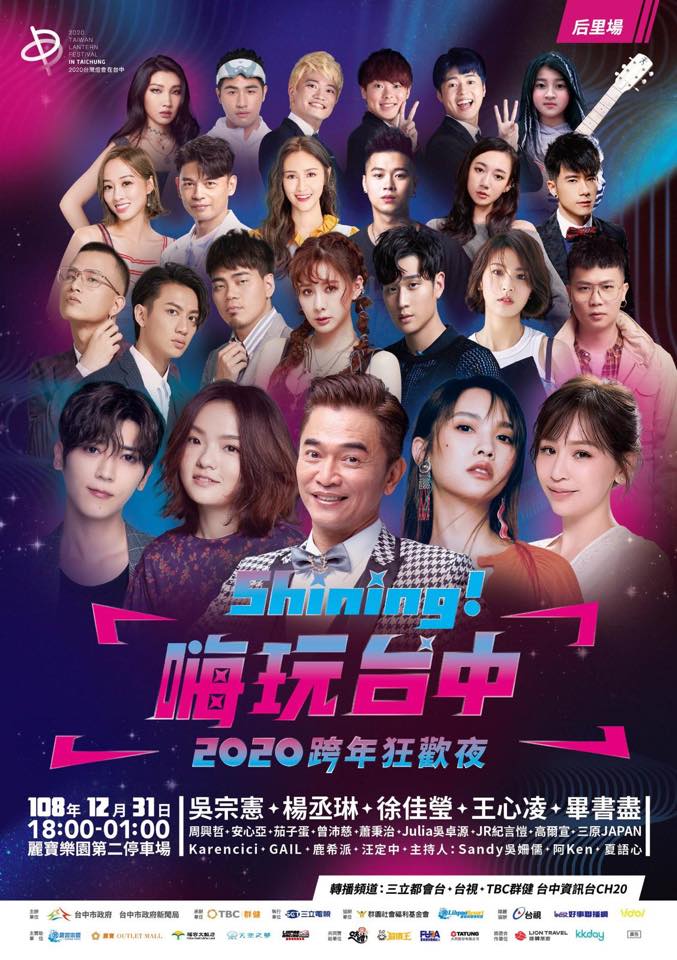 今年的台中跨年將會分麗寶樂園以及太平運動場兩個場地,麗寶樂園這邊有多位天后及的歌手將會來到現場,包括楊丞琳、徐佳瑩、王心凌、曾沛慈以及吳卓源,陪大家一起High翻台中!中部的妞妞們來麗寶跨年就對了~