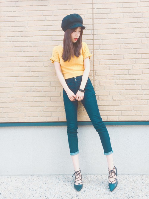 短褲×背心襯衫的穿法可愛且不會過於正式~而有份量感的帽子也讓整體多了一些季節感!