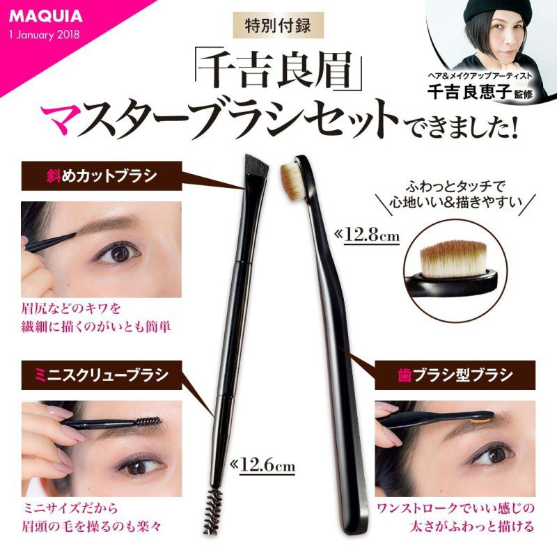 彩妝專門的MAQUIA這次推出由明星御用化妝師千吉良眉監製的刷具組,專門為畫眉設計的刷具,牙刷型的刷頭能夠讓眉色暈染的更自然,想要擁有仿若天生的時尚眉不是夢!