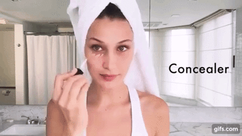 首先,廢話不多說先拿出「遮瑕膏」吧!身為爛臉救星的遮瑕膏,拯救了不少女生的煩惱,貝拉把遮瑕膏在黑眼圈處由上往下大面積的塗抹,再用美妝蛋均勻上妝。