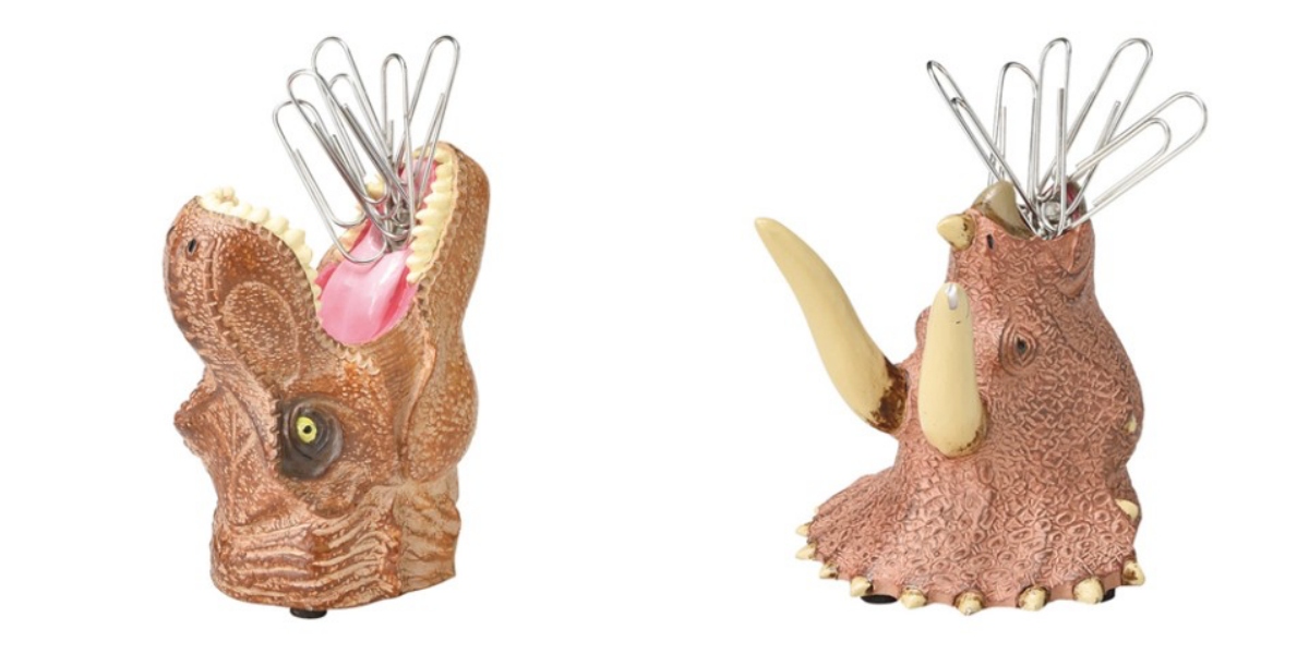 這款迴紋針架外觀實在太好笑啦!怒吼的暴龍跟淡定的三角龍吃著迴紋針的樣子,讓辦公桌都變得活潑了起來,耳邊彷彿也響起了暴龍的吼聲啊!