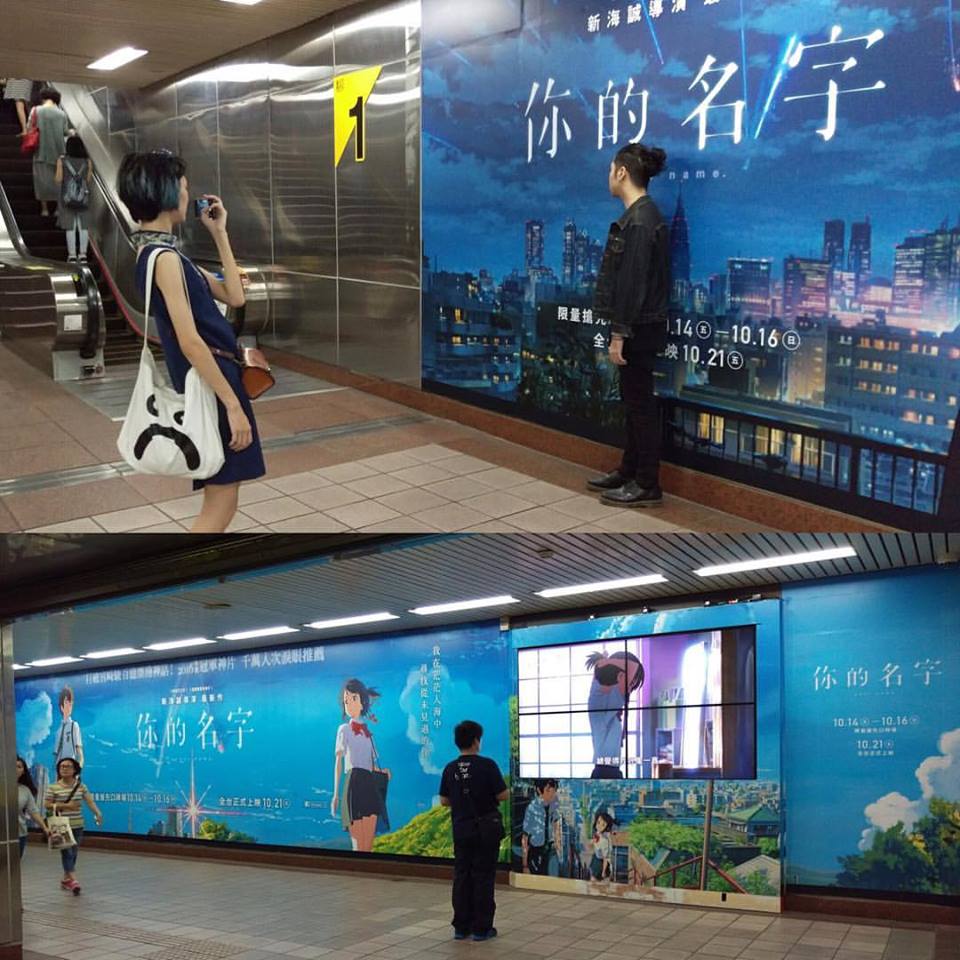 最近片商在台北忠孝新生捷運站內,更架起了《你的名字》的大型宣傳畫報+電影預告,超夢幻且大手筆的宣傳方式,也讓許多人們紛紛停下腳步拍照留念。手機小姐經過時也同樣被深深吸引,而且還看到許多朋友佇立在預告影片前方,露出期待的笑容呢〜