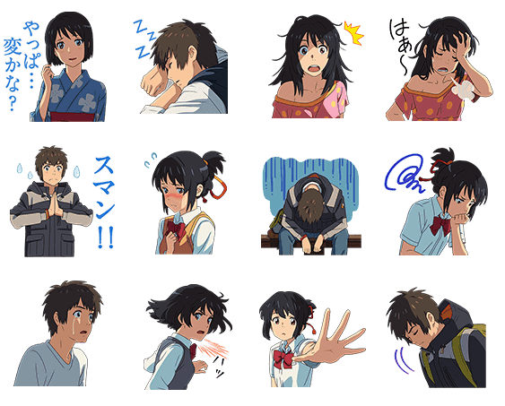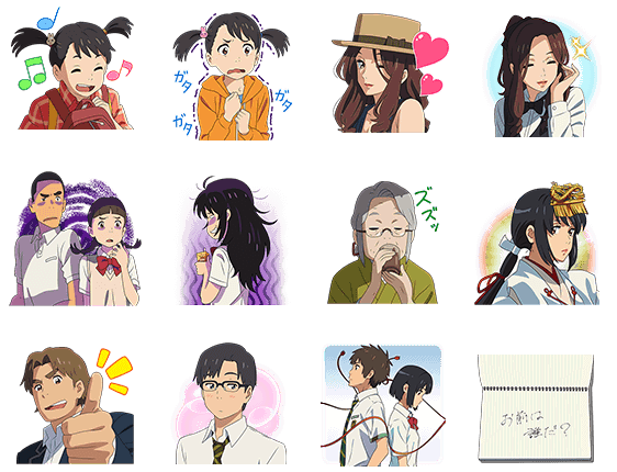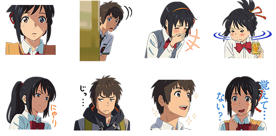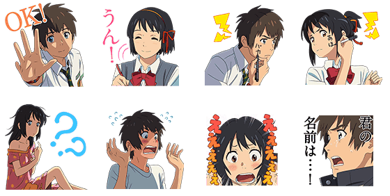 不過今天手機小姐要特別介紹的,當然就是近期在LINE上架的《你的名字》貼圖囉!這款「日本限定」的貼圖中,不只收錄了男女主角每個經典表情、畫面、其他重要配角們也通通在內,一次滿足粉絲的心願。