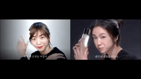 迷弟容國喜歡湯唯歐膩(姊姊)的心,可說是打從心底的喜歡呢!甚至這次還開大絕穿上女裝模仿她代言的美妝品廣告。