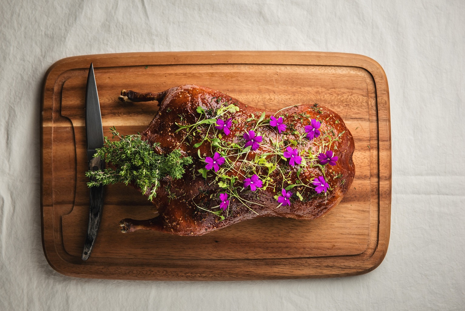 開幕兩年便榮獲米其林餐盤推薦的「Chou Chou法式料理餐廳」,是以創意著稱的米其林一星主廚 ─ 林明健 ( Chef Kin ) 所主理的其中一間星級餐館。有別於一般距離感十足的法式料理,Chou Chou走的不是高價,而是高質,也是許多時尚媽媽們的口袋清單。「Chou Chou招牌法式烤全鴨」,結合經典法式香橙鴨並導入港式脆皮鴨概念,擇以宜蘭櫻桃鴨,經香料鹽水浸泡、乾式熟成14日,低溫、高溫反覆烘烤,造就港式脆皮鴨的外皮香脆、肉質香嫩。原價台幣4,400元,5/11~5/12單點優惠價台幣3,400元,每餐期限量5隻!(即日起接受預訂,需三日前預訂並預付訂金台幣3,400元);「炭烤和牛紐約客」則是饕客必點主菜,A4等級和牛以炭火烤至外層香而內層軟嫩,淋上結合台灣特有香料馬告,立即襲捲四方味蕾。 必點餐點:招牌法式烤全鴨、炭烤和牛紐約客、香煎鴨肝、烤舞菇