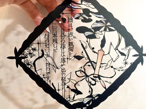 不知道大家小時候有沒有玩過從書局買回來的一種黑色剪紙,只要沿著底稿的線一條一條慢慢刻,就可以刻出美麗的人像或動物,這種東西現在已經很少見了,沒想到就在前幾天妞編輯發現了一位日本的藝術家,不只有類似這樣的作品,甚至還能刻出彩色和文字的剪紙!