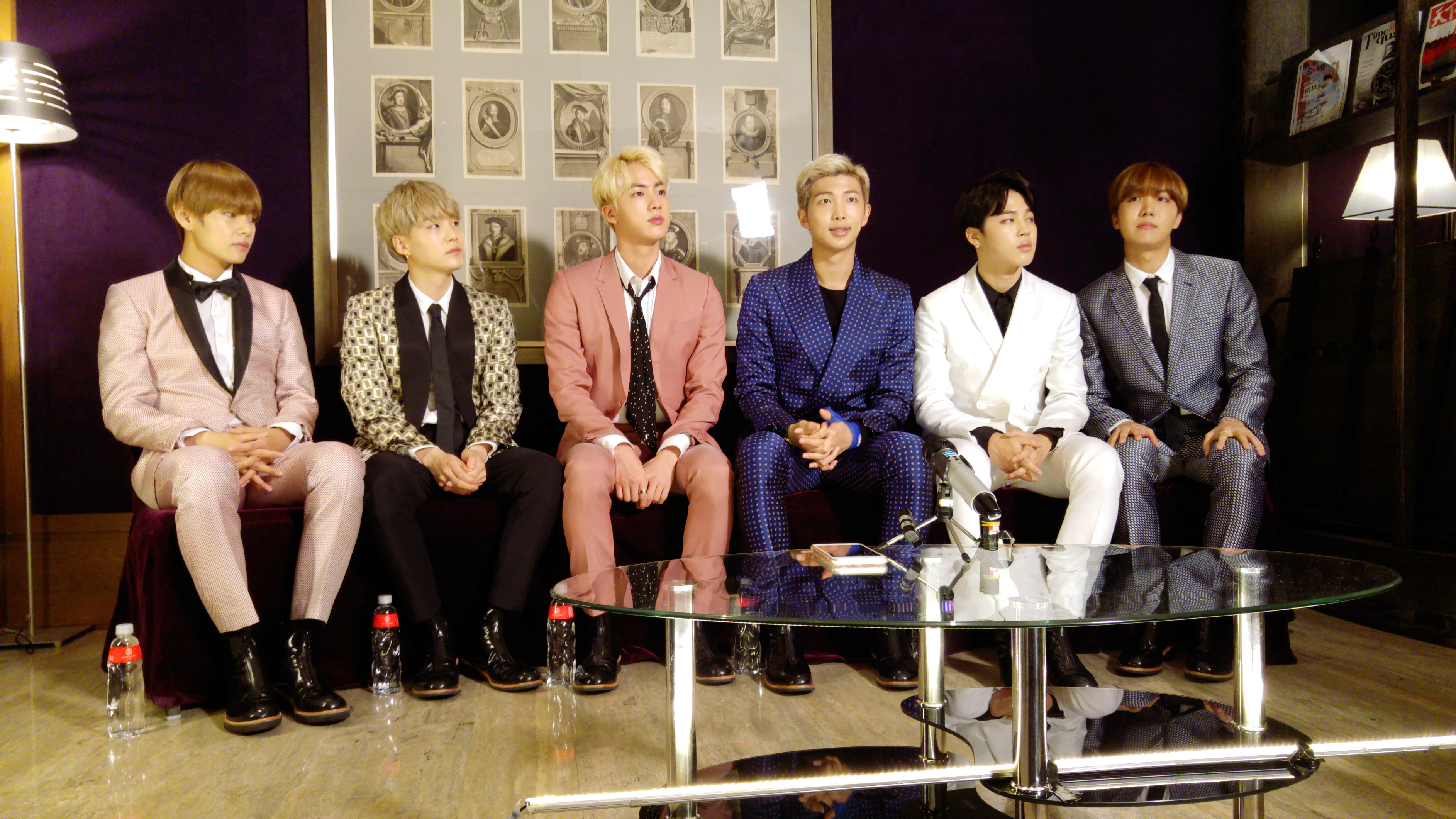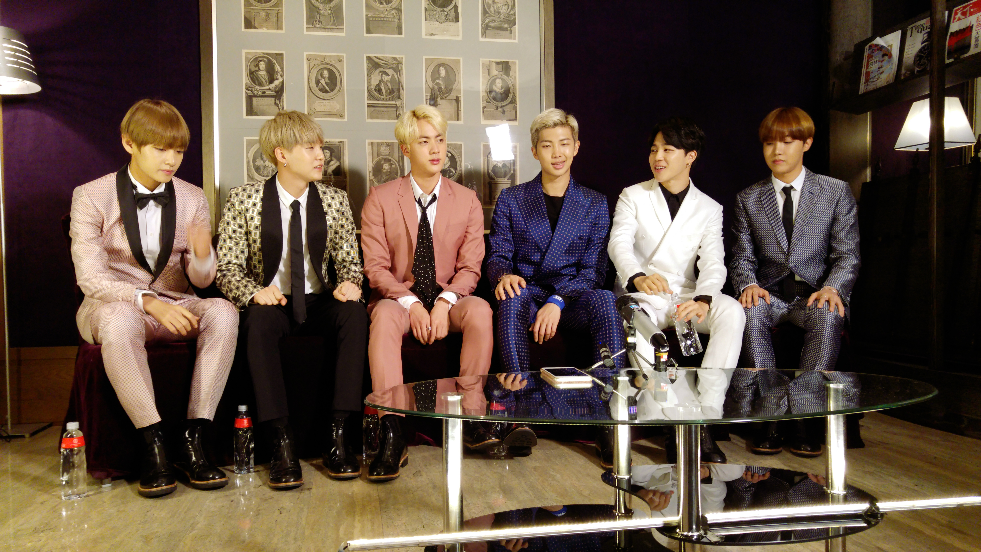 在訪問途中也有記者貼心發現隊長Rap Monster的手有包紮,原來隊長在練舞途中不小心扭傷了手腕,被發現受傷時還害羞地笑了一下表示不是什麼大問題啦~粉絲賣緊張~