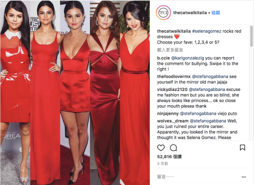這樣的言論不僅是讓賽琳娜的粉絲震驚,連大部分路過的網友們都對這樣的發現感到不妥!其實賽琳娜跟品牌的關係並沒有不好,她也多次在紅毯或典禮場合上選擇穿上Dolce&Gabbana的禮服現身~