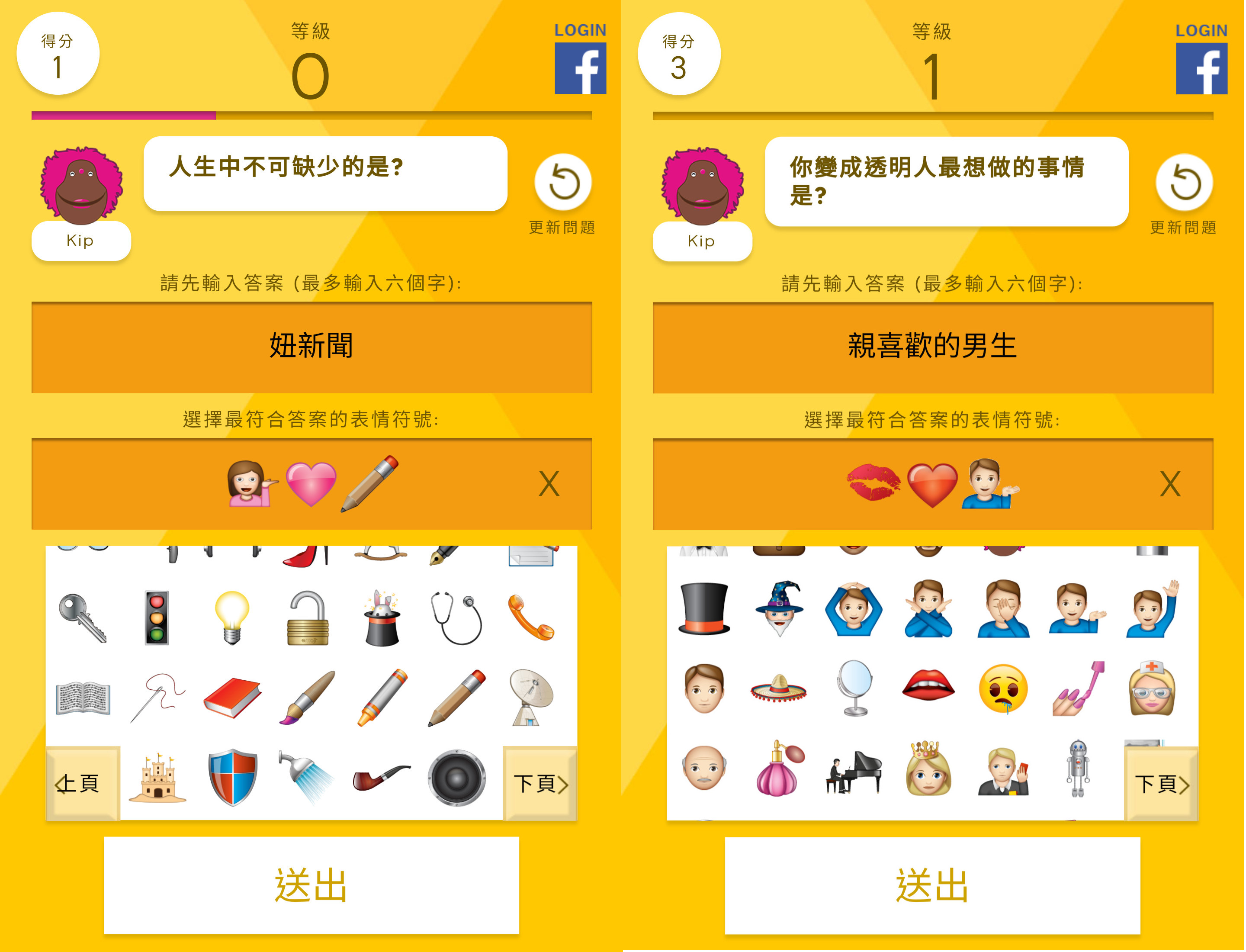 除了猜出別人設置的題目外,更能透過問題來設置彼此間的專屬答案!只要先打出文字版本的「答案」後,在底下找尋相符合的表情符號後送出即可設定好。