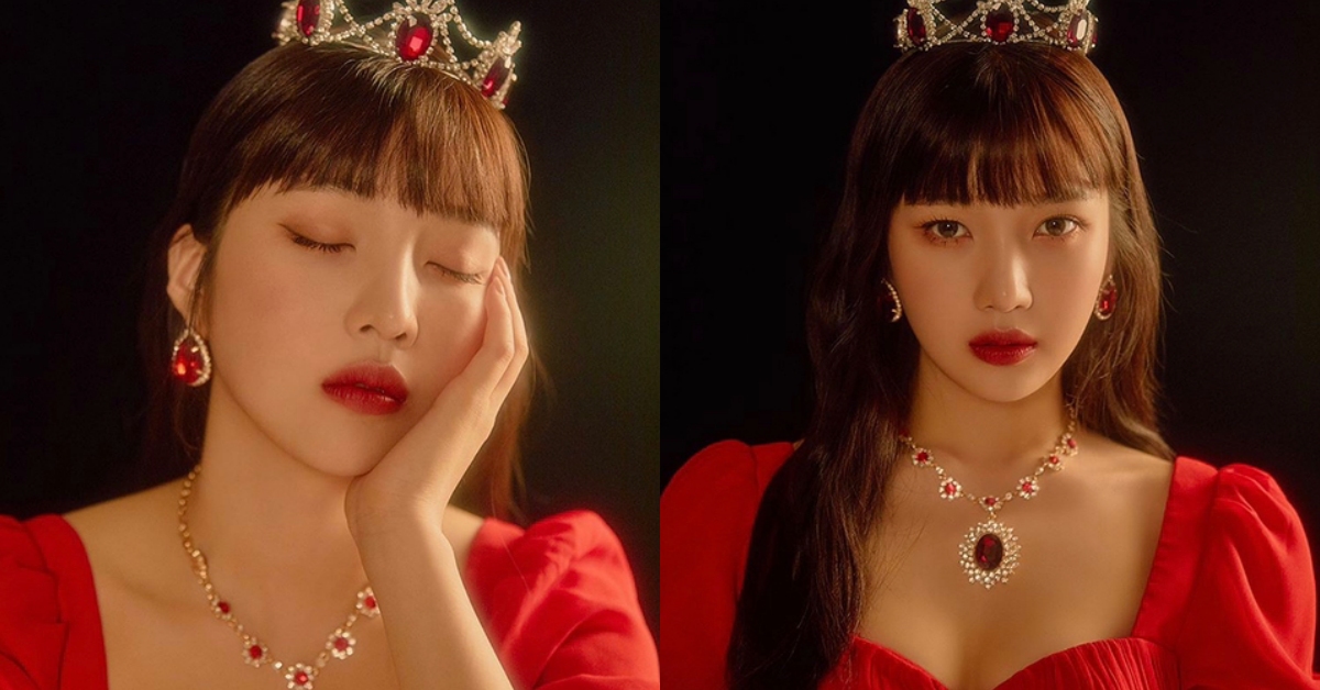 剪了瀏海的JOY戴上皇冠和紅寶石首飾後,活脫脫就像是個中世紀的貴族女王啊!(跪)對鏡頭的那一瞪,把粉絲的心臟都擊碎了啊!演唱會週邊買起來買起來!