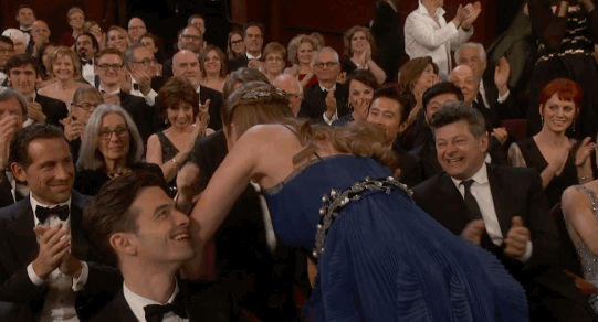 每次要宣布最佳女主角時,雅各都會十分緊張,一聽到布莉得獎也會馬上跟他high five或擁抱。