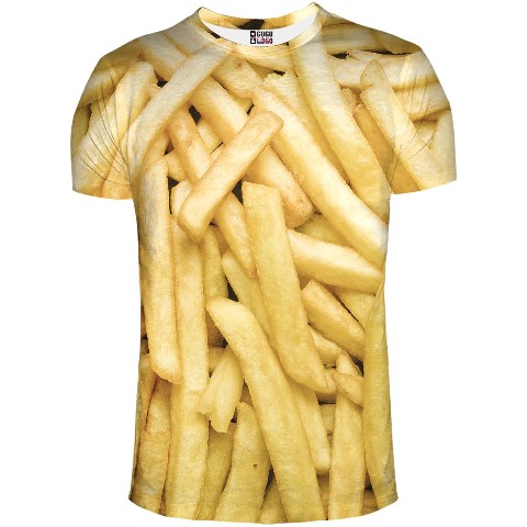 像是這件滿滿薯條的T恤,連上面的鹽粒都看得見!明明是2D的印刷,卻如此立體、逼真到妞編輯肚子狂叫~