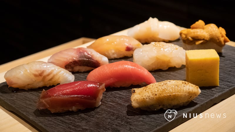 師傅會將現做好的料理──握壽司、小菜、手捲、烤物等──依照推薦食用順序一品一品地端到客人面前。甚至連握壽司都已經一一刷上最佳比例的調味,不用再另外沾醬就可以直接吃。