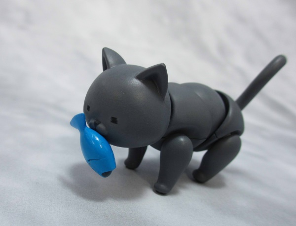 原以為做出各種自家主子的動作就已經夠萌了,沒想到這隻小貓咪還可以叼魚魚!在嘴巴的部份內藏著磁鐵,可吸附著隨扭蛋附贈的小魚,如果你家貓剛好有這個習慣的話,完全就是必扭啊!