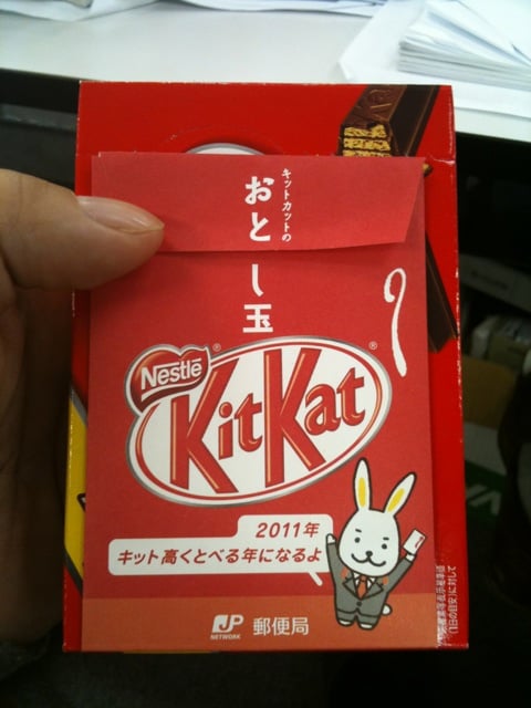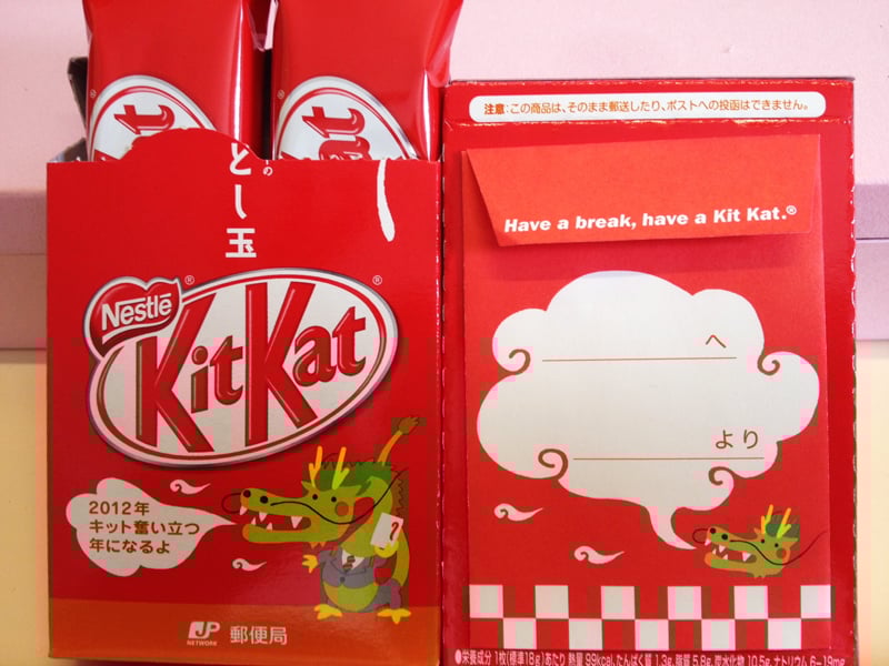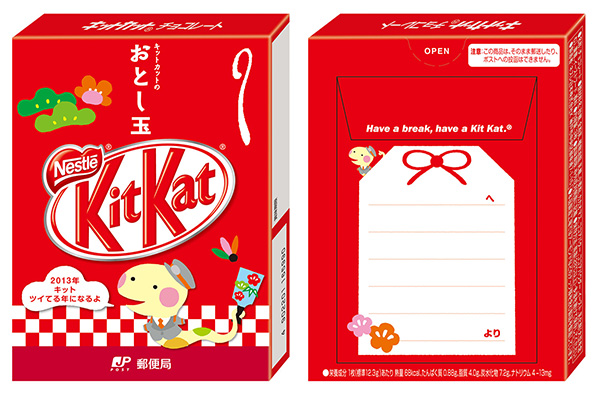 所以說,在年底期間,日本的郵局就是各種的忙、碌、到、不、行!要處理來自日本各地的大量賀年信件,除此之外還要負責銷售只有郵局限定的各式賀年商品,其中一項就是KitKat啦!如果以後妞妞們有機會在年末期間,到日本旅遊的話,記得可以查詢一下附近郵局的營業時間,然後進去買個新年限定的Kitkat~當場買完就可以寫在KitKat賀年卡上面,然後把它從日本的郵局寄回給台灣的親友,是不是超級棒的咧~