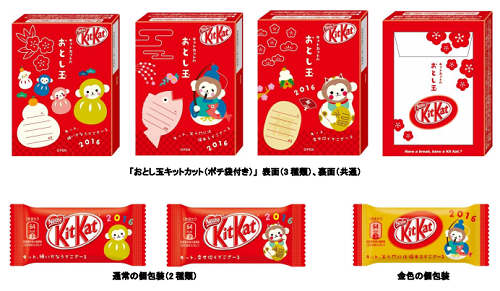 但是妞妞們一定不知道,KitKat已經連續好幾年都有在新年期間推出限定的十二生肖賀歲巧克力!而這些以紅包(お年玉)及賀年卡(年賀狀)為靈感的超喜氣巧克力,是日本KitKat的「郵便局」新年限定款式!!!也就是說,如果觀光客要買這款賀年巧克力,還不是隨處想買就可以買得到~而是必須親自跑一趟日本的郵局,才有可能一睹它可愛的風采!