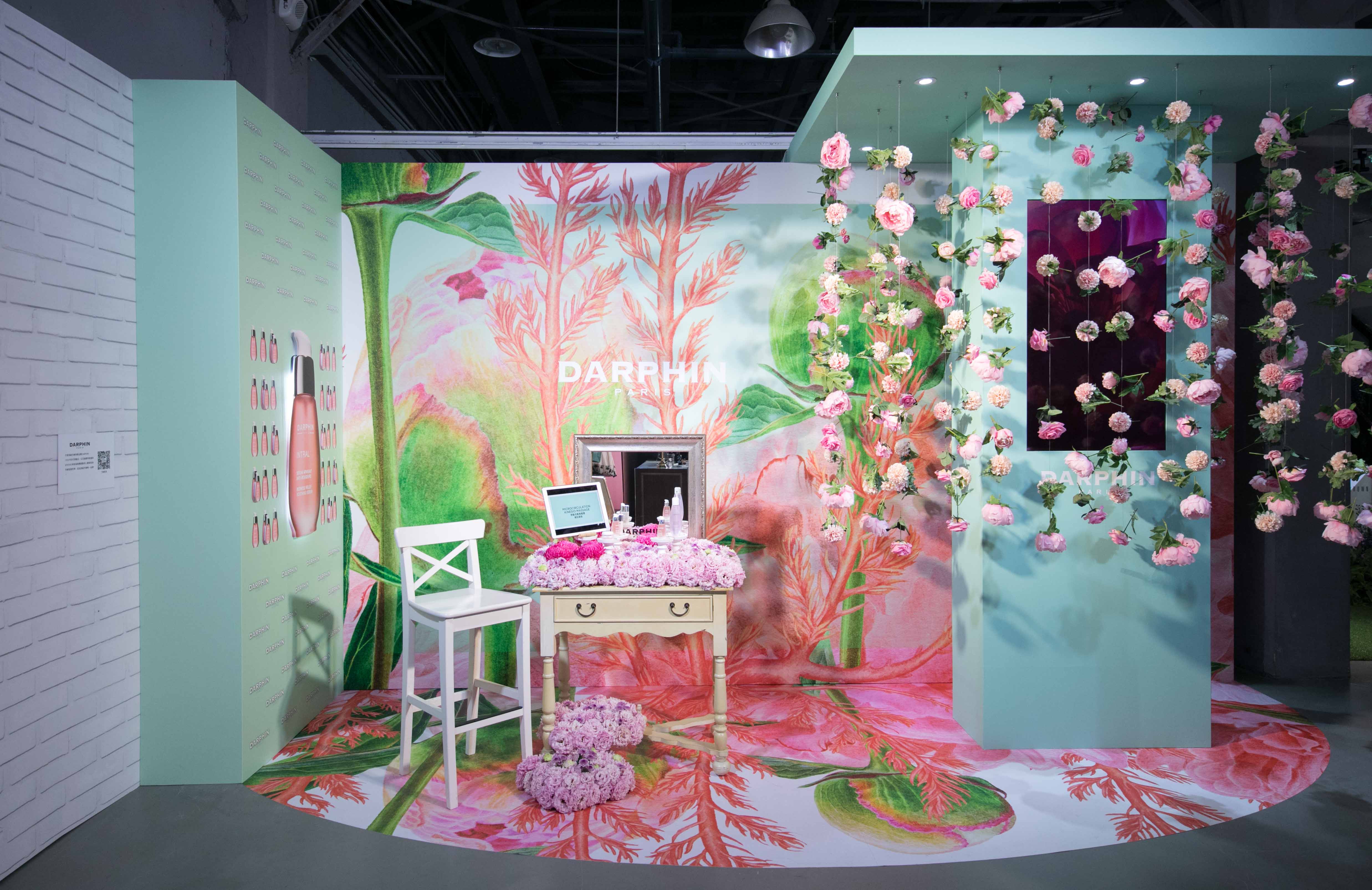 1958年於巴黎誕生,以花植精萃能量與KINESIO美肌瑜珈,獨創讓身心靈愉悅的芳療保養哲學品牌DARPHIN,其中最受敏感肌喜愛的粉紅療癒舒緩保養—「全效舒緩系列」,這次特別在會場打造夢幻化妝台,滿滿的粉紅花卉,隨便拍都少女感十足呀!