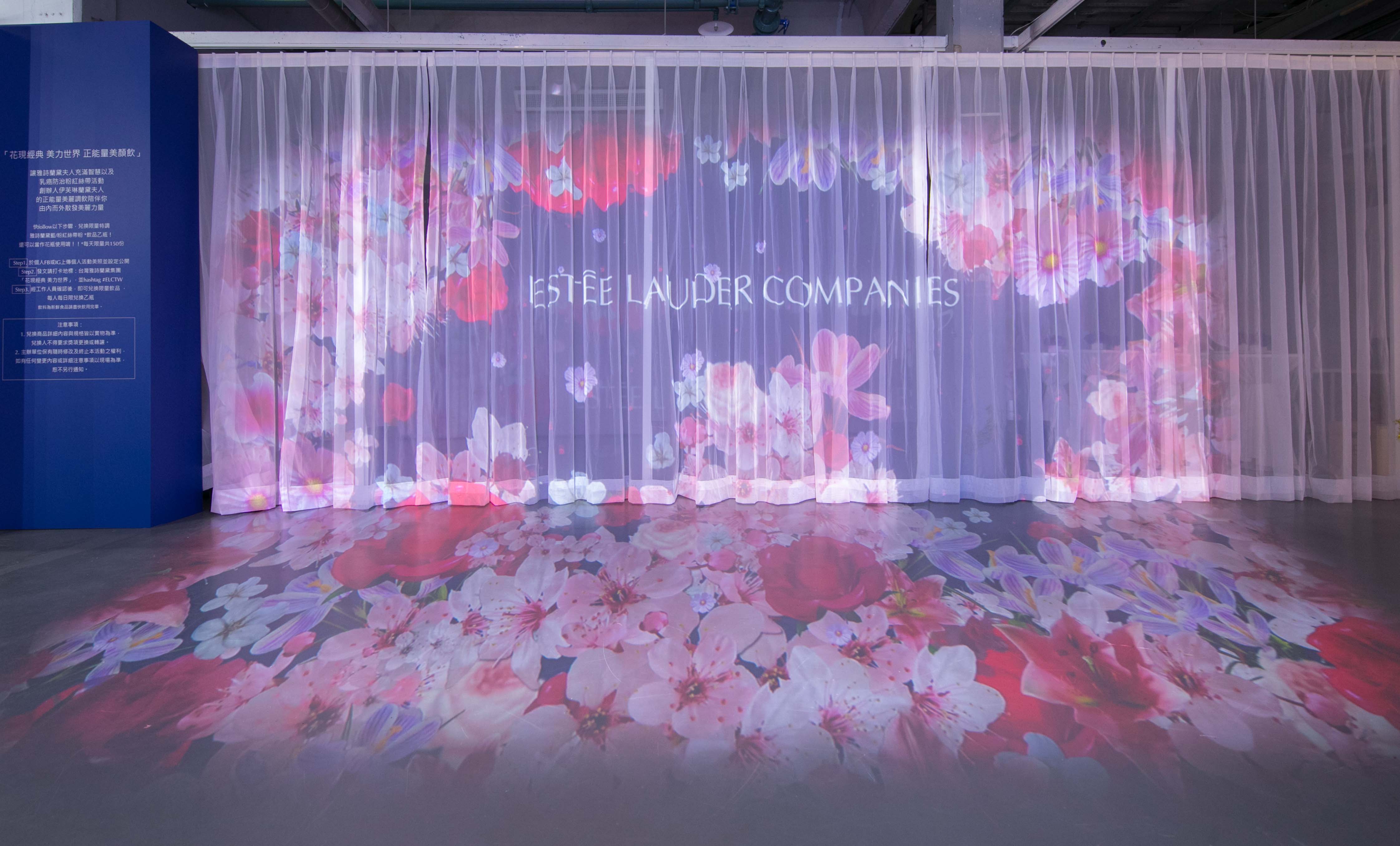 走進這次展覽的第一站,會先來到雅詩蘭黛,現場搶先展示今年母親節即將推出的超值組合,還有每年都讓人失心瘋的滿額贈禮!圖片中的花卉投影牆,大力推薦一定要站上去拍,不管是靜態照片還是動態影片,拍起來都超~美,絕對要列入此次展覽的必打卡點!