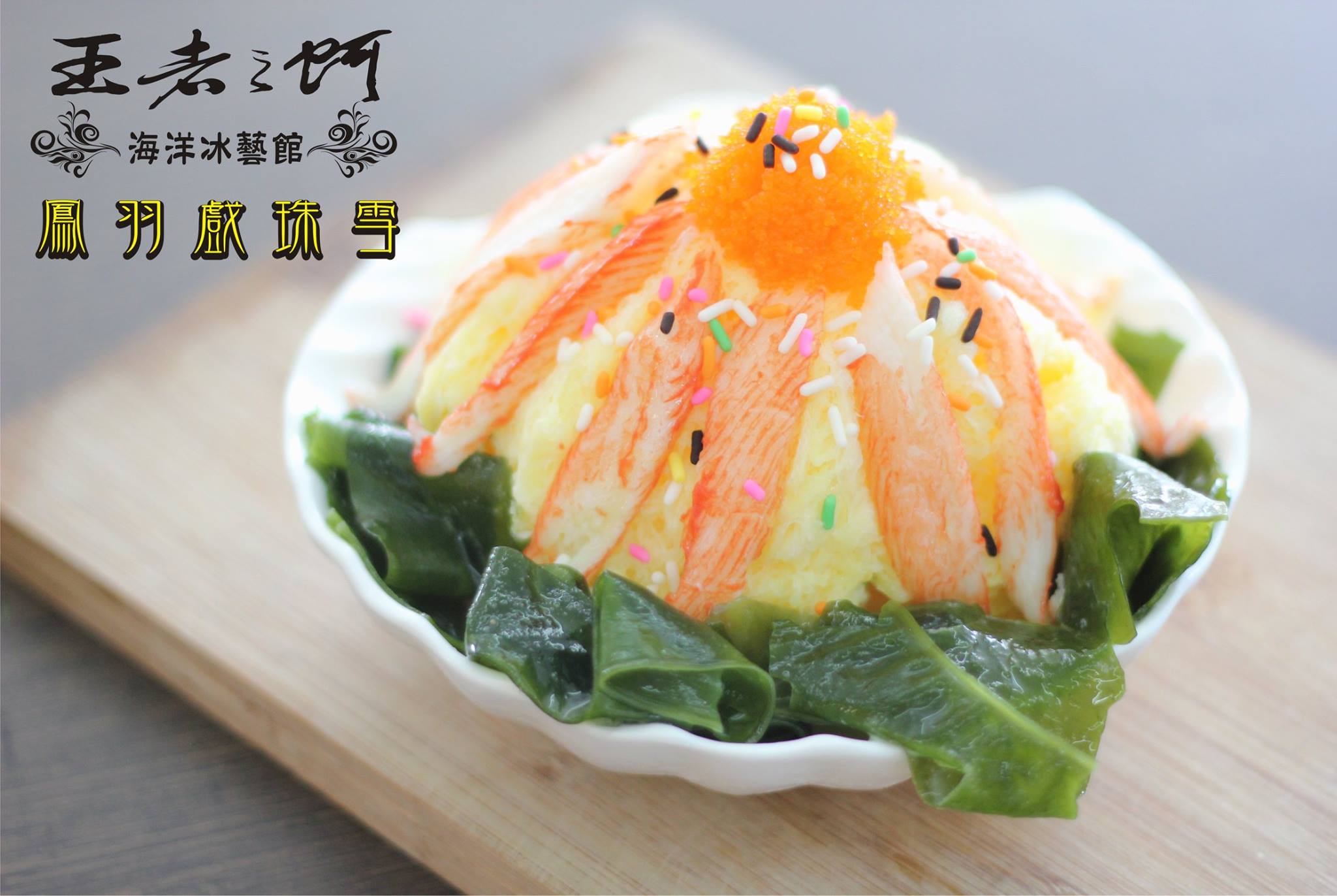 這款名字非常詩情畫意的「鳳羽戲珠雪」,以新鮮蟹肉、海帶芽、明太子等海鮮食材做為配料,視覺上也是相當的喜慶,感覺很適合當作辦桌的尾點耶~(只是客人能夠接受嗎?)
