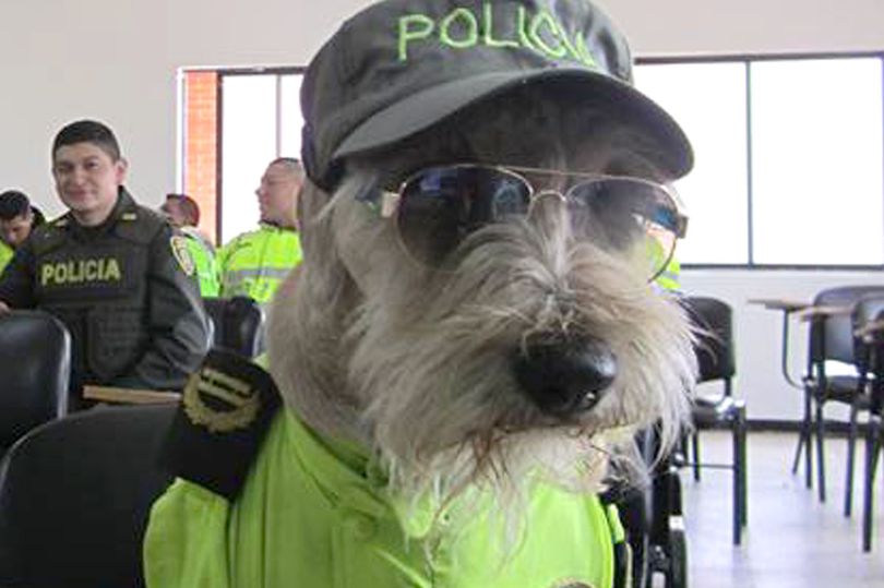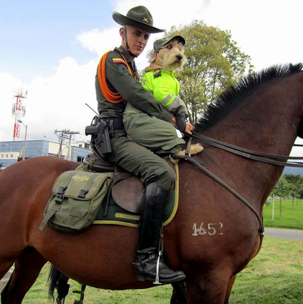 在哥倫比亞的大街上,一隻到處流浪的狗狗,在快要餓死之際,被軍事後備軍