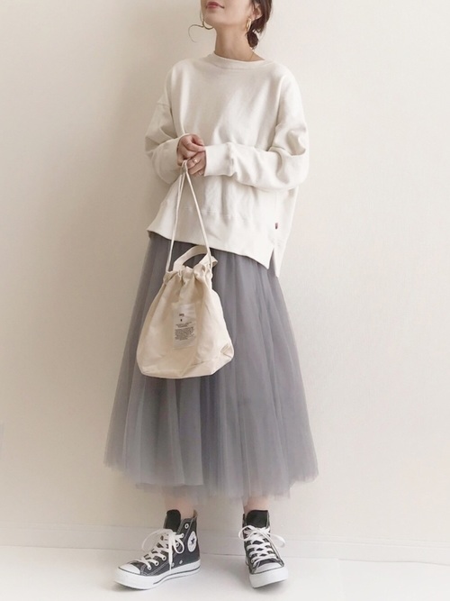 這種澎澎的紗裙其實很適合梨形身材的人穿,如果你是屬於扁平身材,可以向這位妞妞一樣搭配寬鬆的上衣,但如果你是梨形身材或棉花糖女孩的話,切記上半身一定要選擇貼身的款式,不然會看起來很像懷孕!