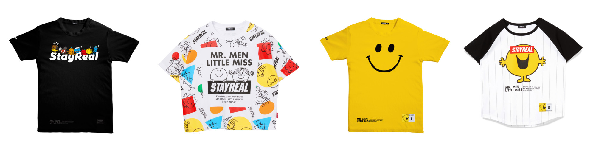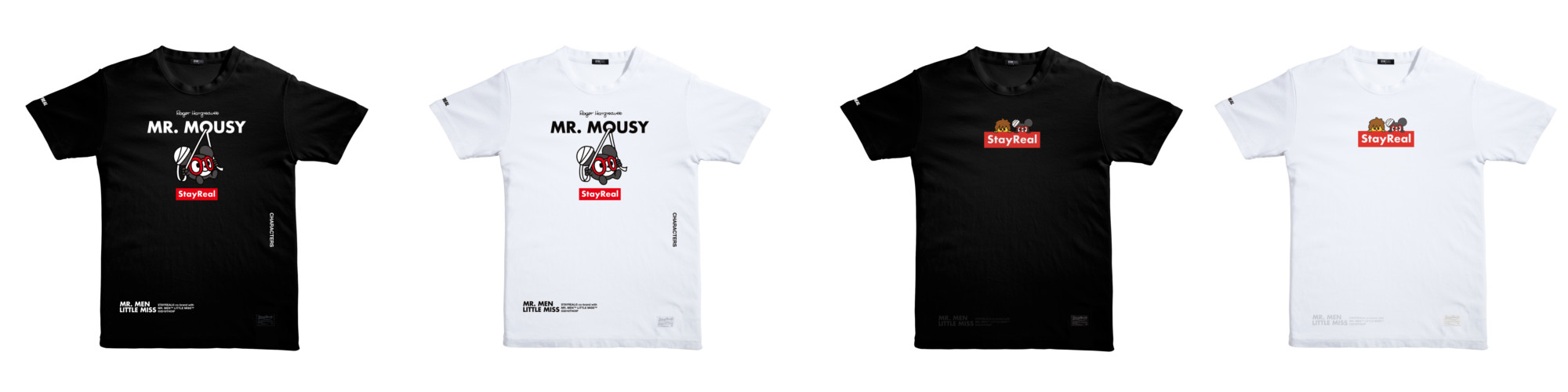 今年夏天,STAYREAL與英國知名繪本奇先生妙小姐(Mr. Men Little Miss)攜手推出聯名系列,特別讓STAYREAL主理人五月天阿信與靈魂人物小鼠化身Q版人物,一起進入繪本的異想世界,為聯名系列帶來更多歡樂與創意想像!全新STAYREAL x奇先生妙小姐(Mr. Men Little Miss)聯名將於2018年5月4日起在台北、香港、上海、北京、廣州、東京等亞洲重要城市陸續上市。