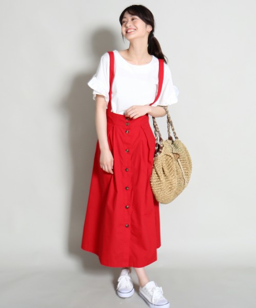 夏天就想購入一些飽和、鮮艷色系單品,熱辣辣的天氣就像依然想吃麻辣鍋一樣,也想把紅色穿上身,感覺人特別有氣色,將白踢搭配紅色吊帶長裙,給人鄰家女孩感卻又很亮眼。