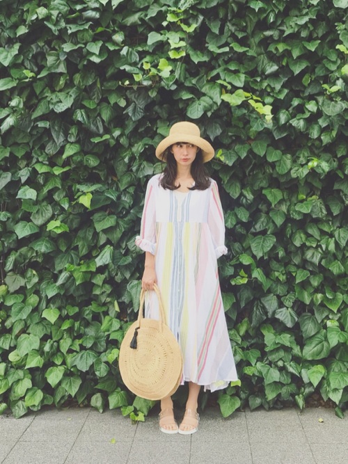 彩色條紋洋裝用淡淡的色調和棉麻材質,清爽又充滿度假氛圍的設計,一件洋裝就是重點,搭個竹編包和涼鞋,就是度假風無誤!
