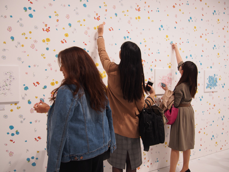 這個展區是利用花(THE FLOWER)小櫻牌設計而成的概念,讓所有粉絲們一起共同參加製作的展示,挑選自己喜歡的花貼紙,任意找尋想要貼在牆壁的哪個角落,這樣的構想相當有創意呢!