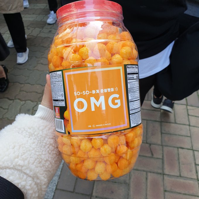 第一天WINNER準備了便當,裡頭有泡菜炒飯、鮪魚拌飯還有飲料等,完全是讓粉絲吃飽飽的套餐組合,飲料四選一、馬卡龍餅乾二選一。第二天則是起司餅乾,雖然是餅乾,但是份量很足,要是整桶吃完,大概也會非常有飽足感,特別用心的就是,WINNER還在餅乾包裝外面寫上「只是SOSO的準備了一下:)OMG」,與主打歌相互呼應了。