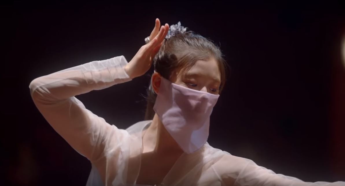 《雲畫的月光》「紗」的應用也很經典,女扮男裝進宮的洪樂溫(金裕貞 飾)臨時上場救火表演舞蹈,但又不能被發現其實自己是女生,就圍了一個「面紗」上場表演,面紗遮得住樂溫的臉卻遮不住樂溫的魅力,讓王世子(朴寶劍 飾)也深陷其中,看著她的表演甚至回憶起已經過世的美麗母親。(看全片點這裡)