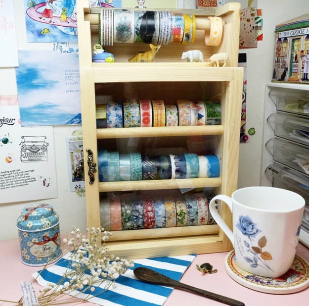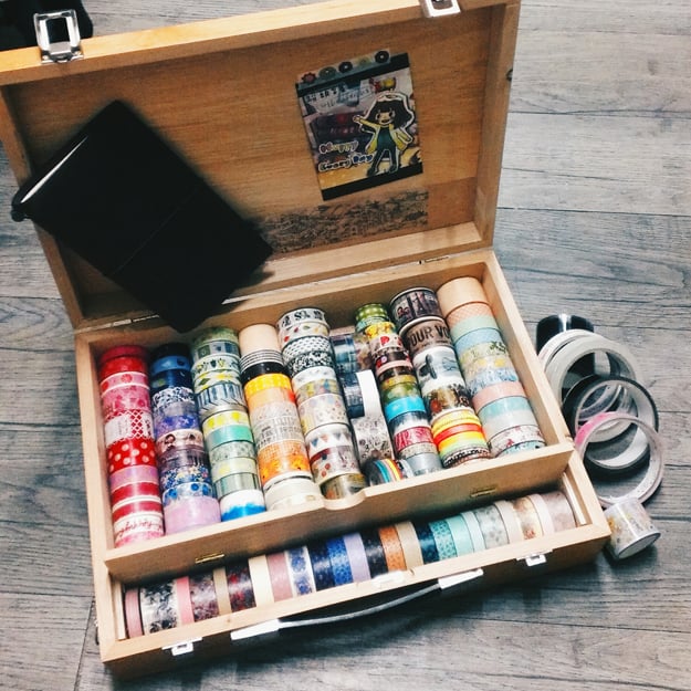 木箱真是氣質滿分的收納好道具,紙膠帶也可以一覽無遺、不沾灰塵,若紙膠帶數量不多非常推薦這種收納方法!