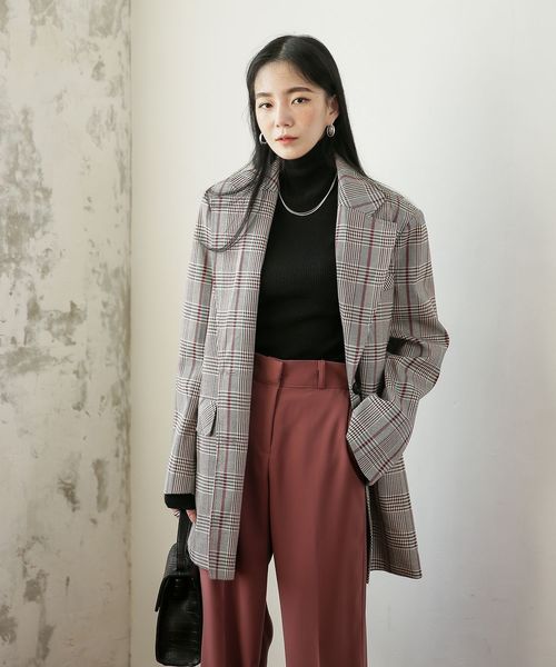 寬大的墊肩西裝外套是秋冬的流行趨勢,接下來的春夏也是必備單品唷~格紋上的線條與褲子的顏色互相呼應,這樣穿太帥了!